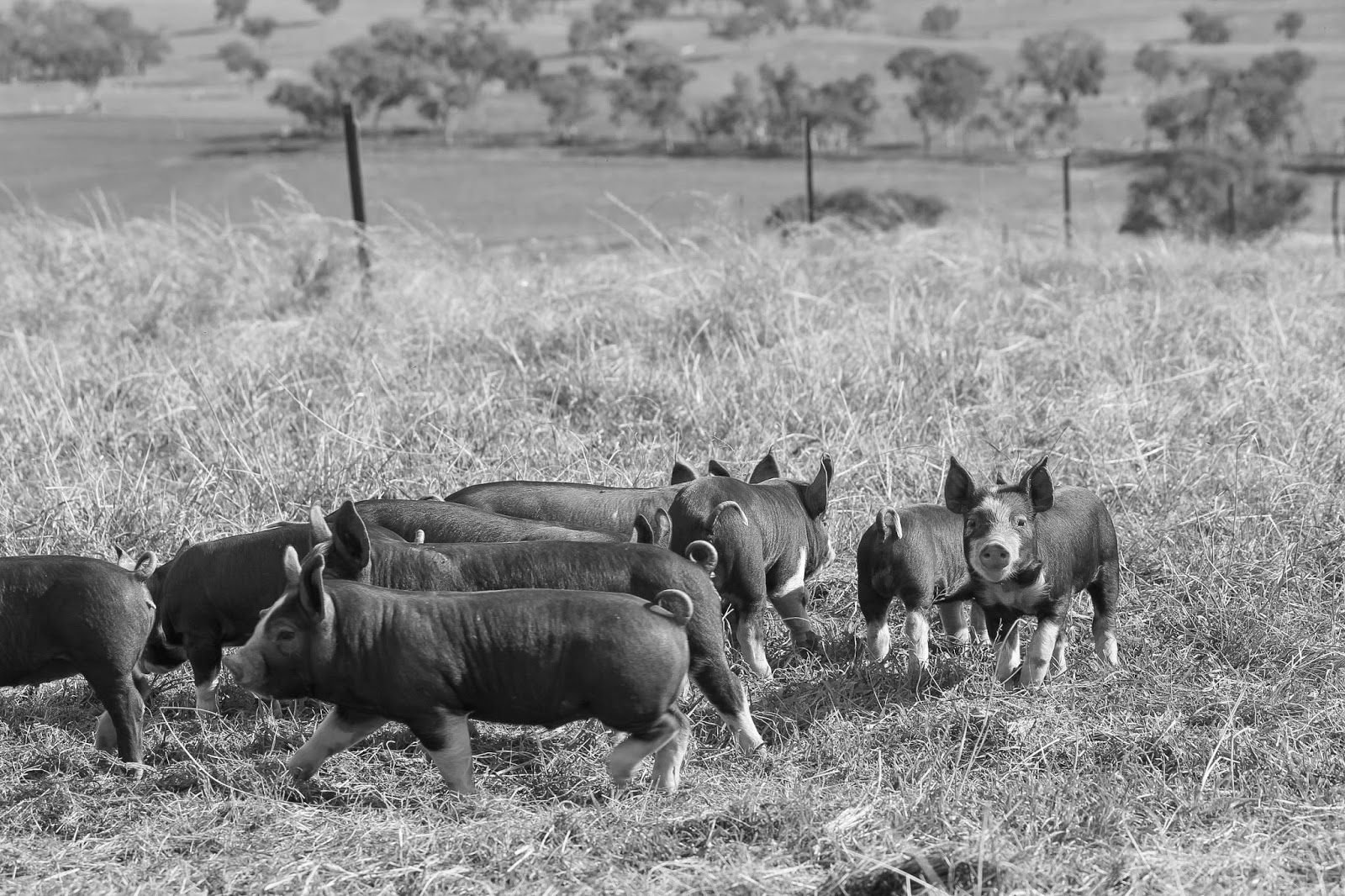 Our customers often note that our pork tastes very different to what they are used to. The difference is that our pigs are ‘pastured pigs’ which means they have access to fresh pasture their whole life. They have the freedom to be mischievous and playful, eat a diverse diet, get out in the sunshine and wallow at their leisure. We do not use chemicals or artificial fertilisers and instead focus on the health of the soil and the pasture which in turn leads to healthy and happy pigs!